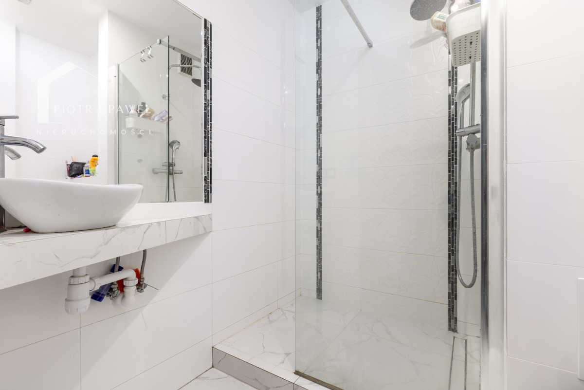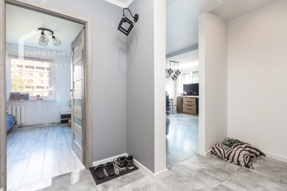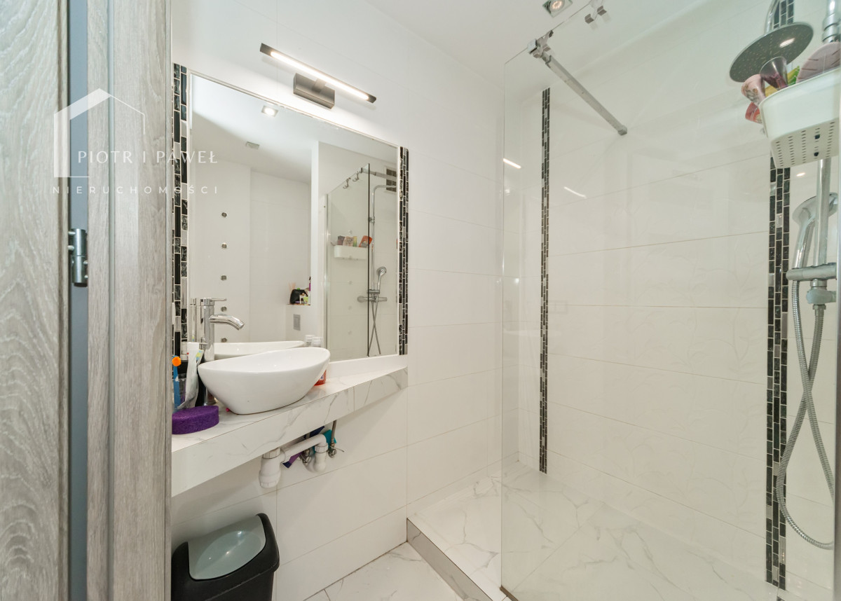 - łazienka + przestronny przedpokój z szafą w zabudowie