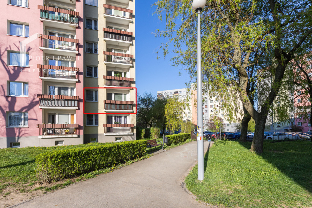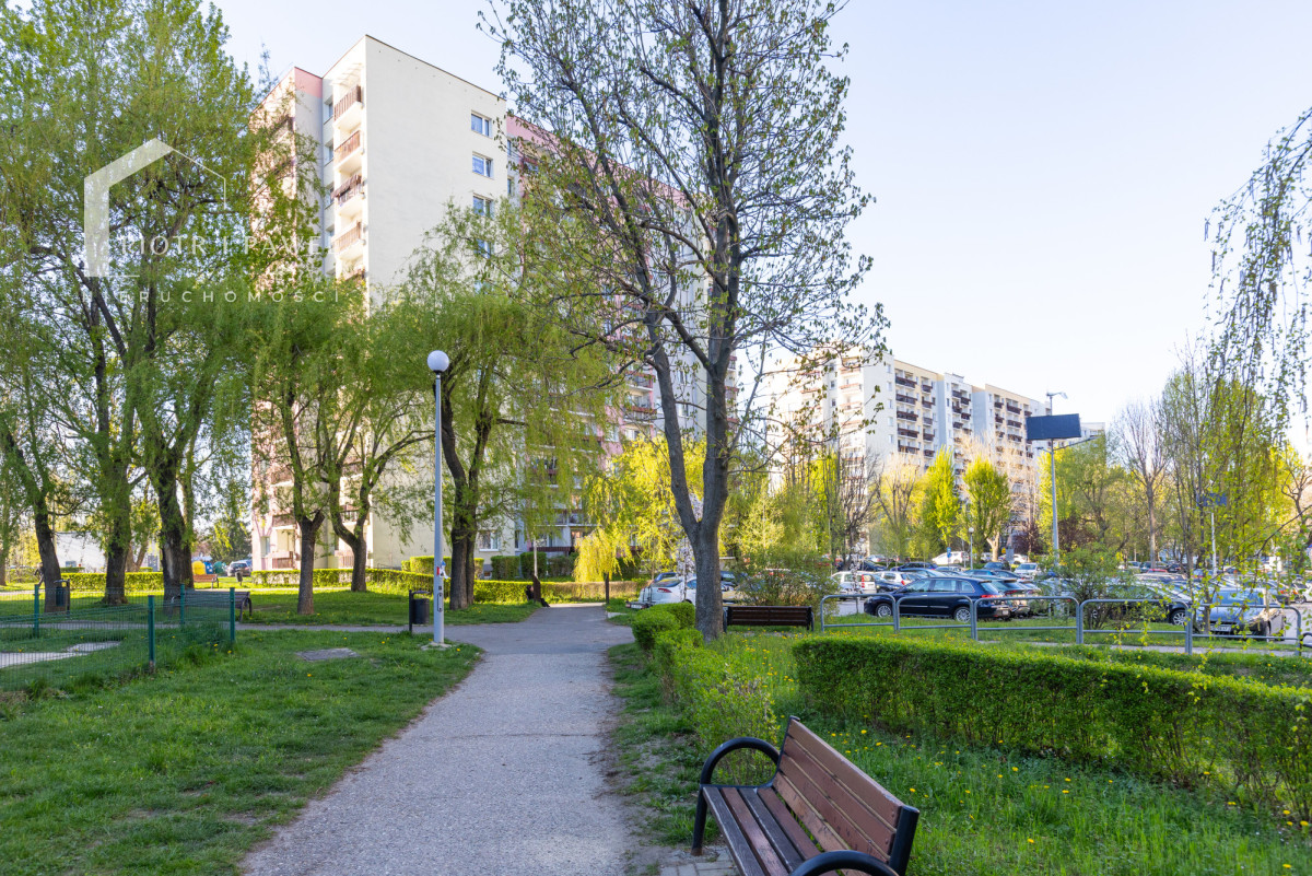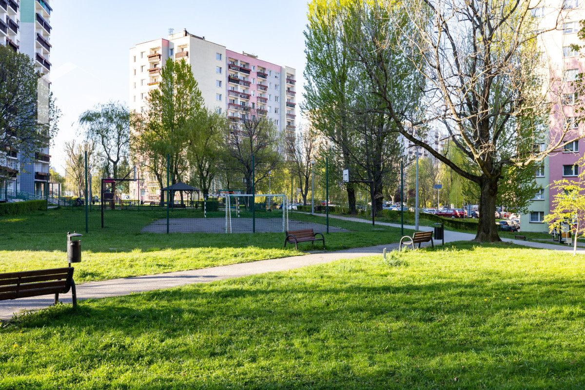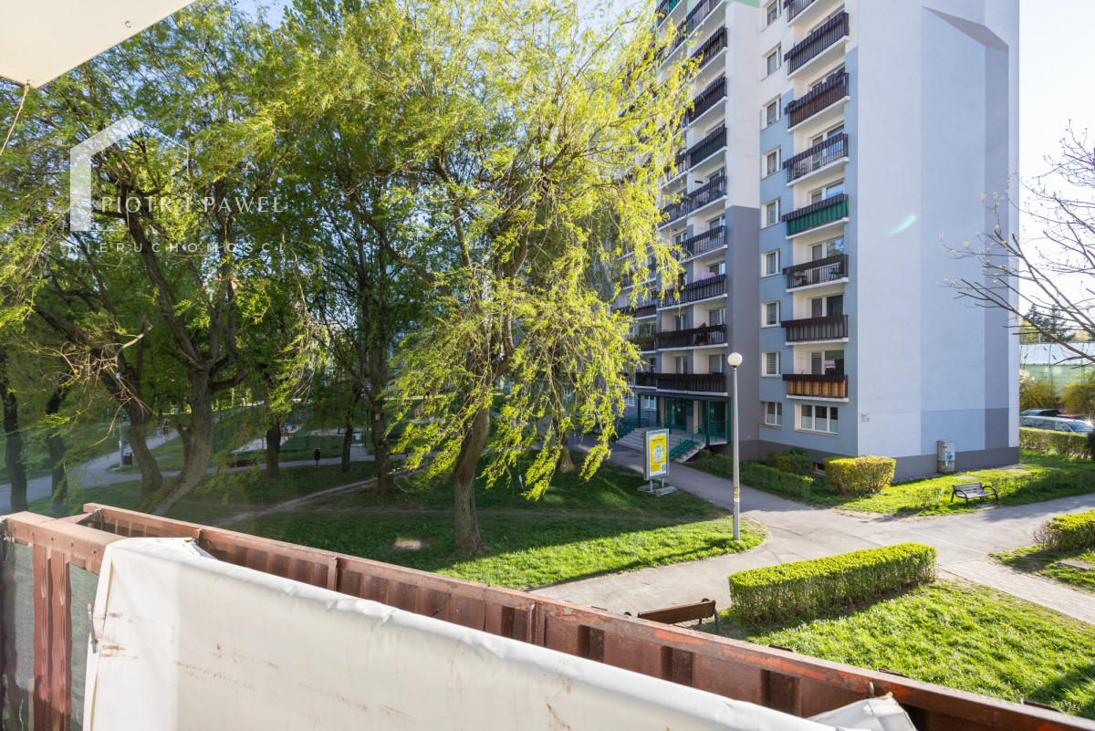 - balkon z widokiem na park osiedlowy - dużo zieleni i drzew
