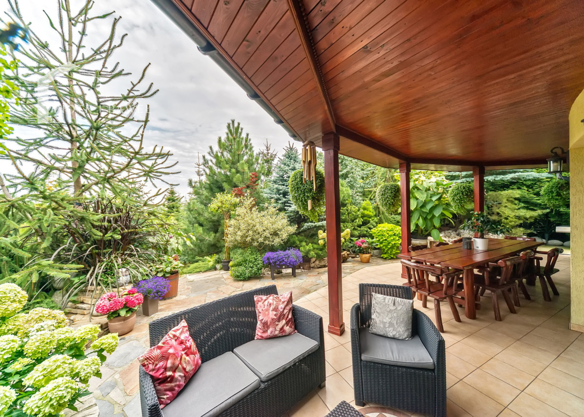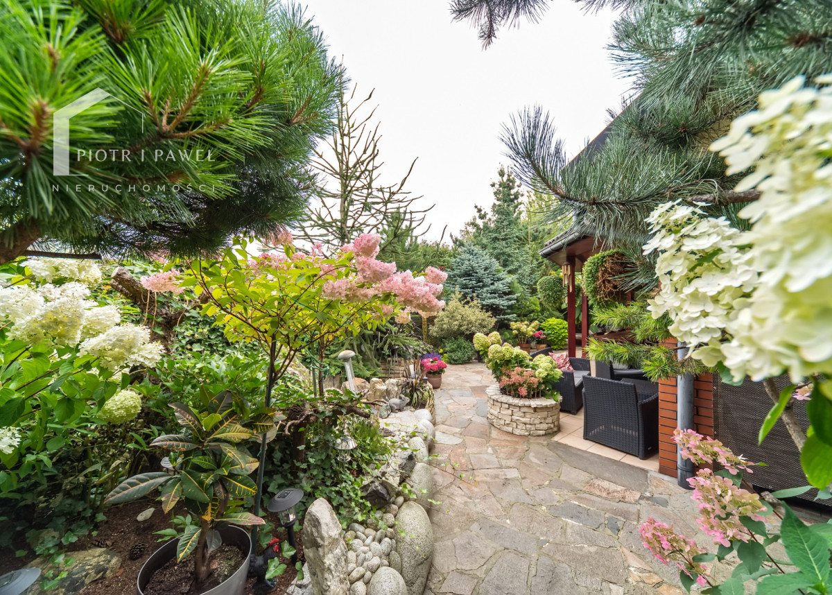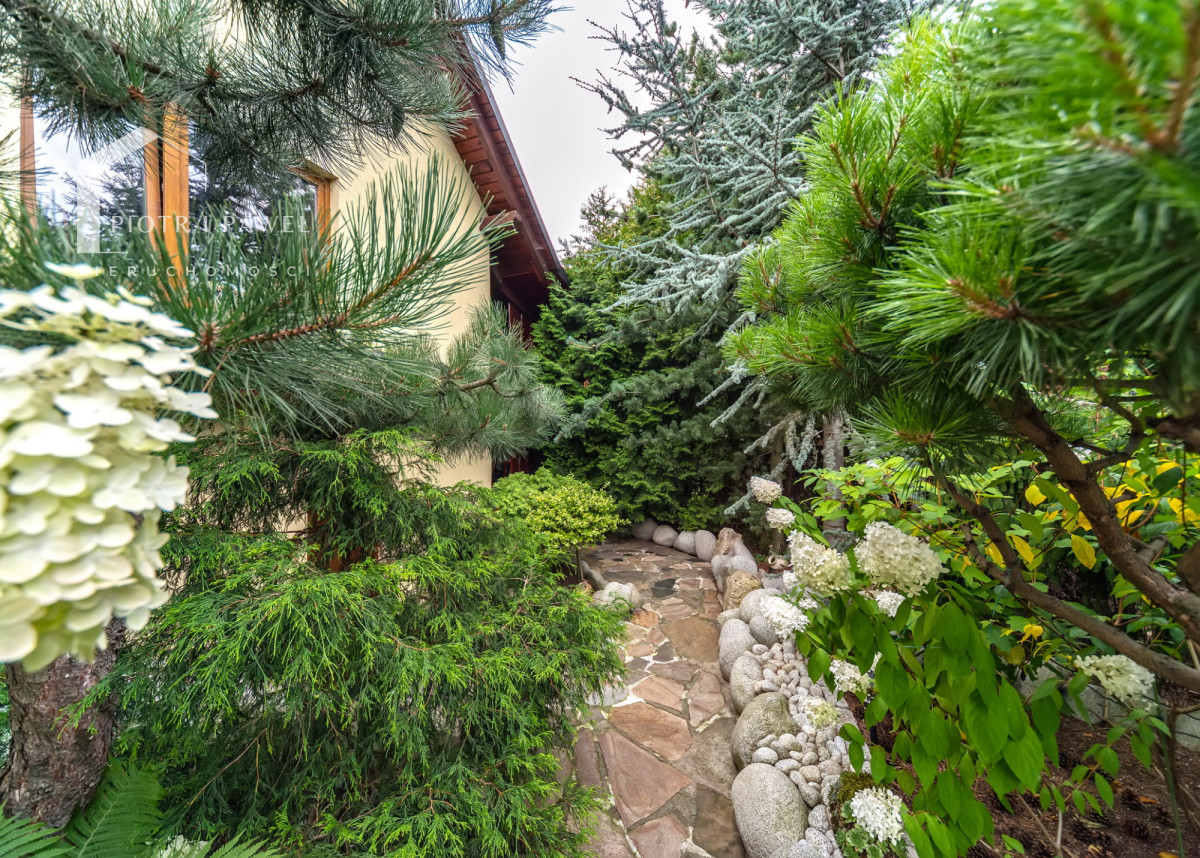 - Działka: 35 arów, w pełni zagospodarowana, z pięknymi nasadzeniami