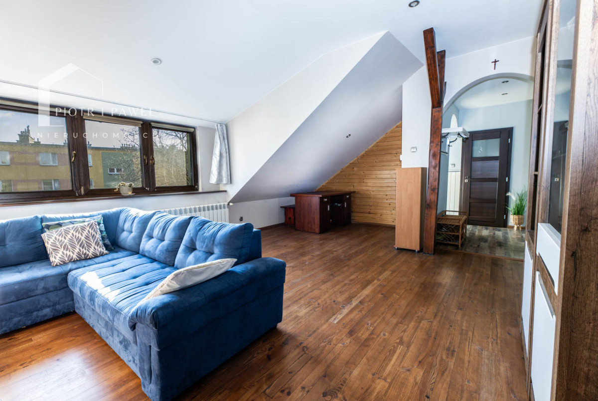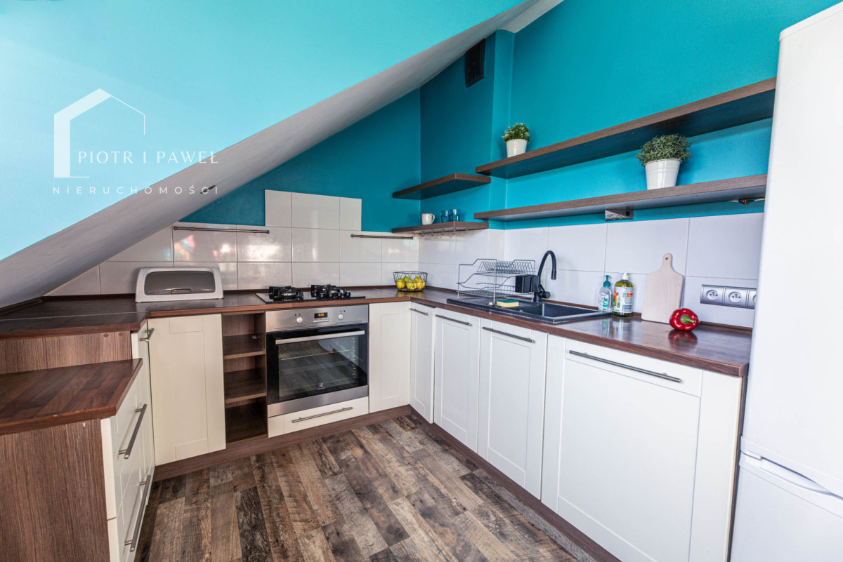 Na sprzedaż klimatyczne, gotowe do wprowadzenia mieszkanie o powierzchni 68 m², położone na zaadaptowanym poddaszu w zadbanym budynku z cegły przy ul. Barabasza, w samym centrum Czechowic-Dziedzic. Mieszkanie znajduje się na najwyższym piętrze, co zapewnia ciszę i prywatność, brak sąsiadów obok. Dodatkowym atutem nieruchomości jest widok na góry, który można podziwiać z okien.